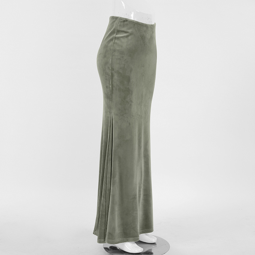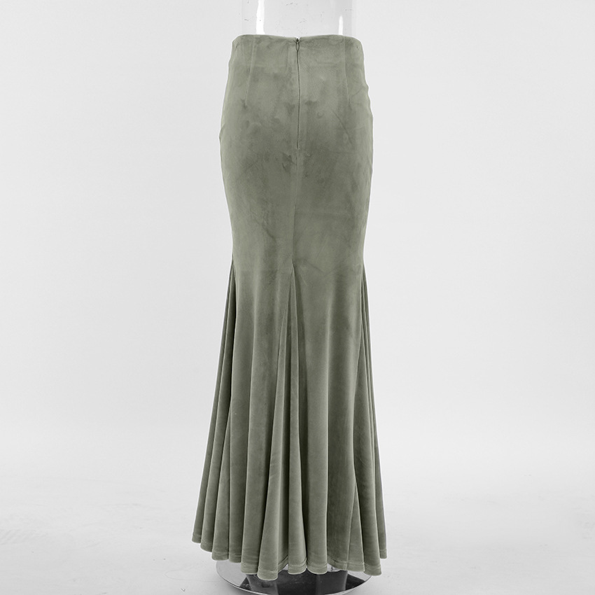 Silver Fox Velvet Green Slim High Waist Fishtail Skirt