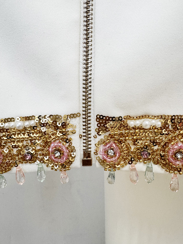Heavy Embroidery Sequin Bead Short Top Skirt Set Two Piece Set