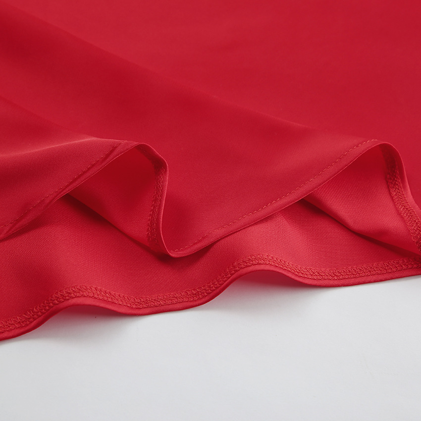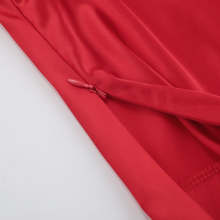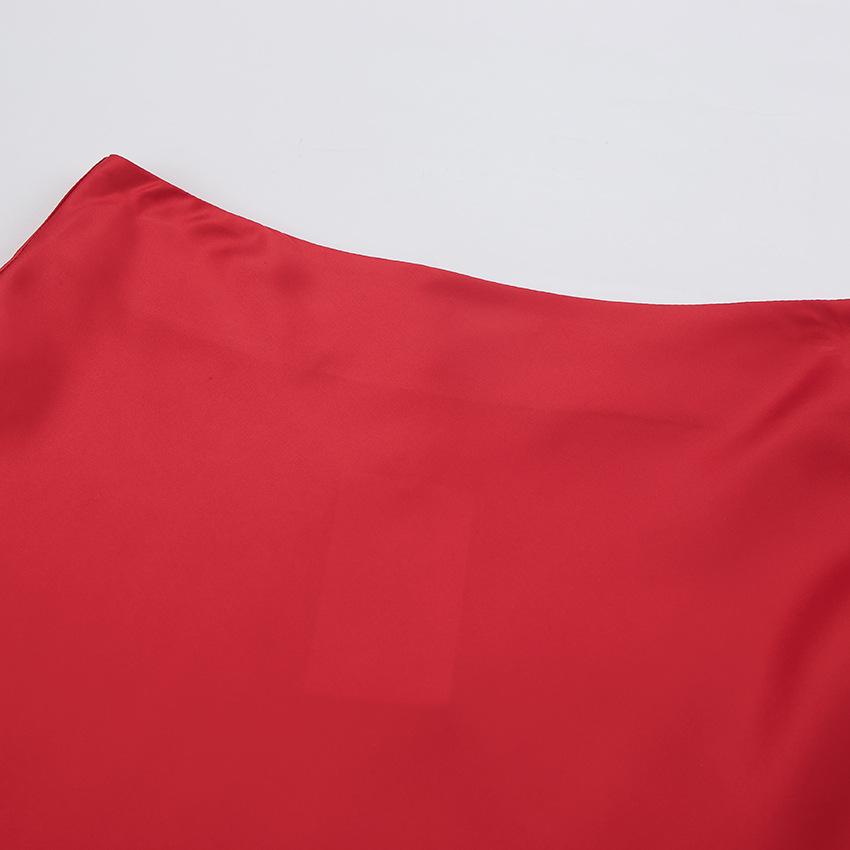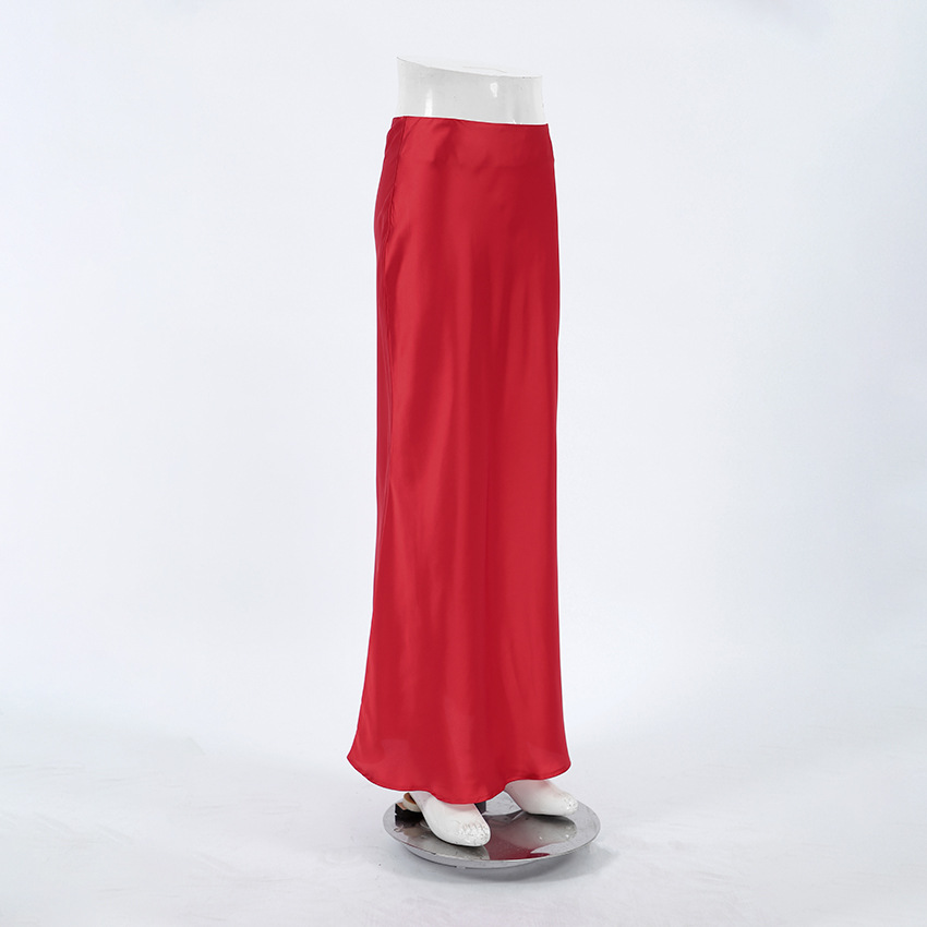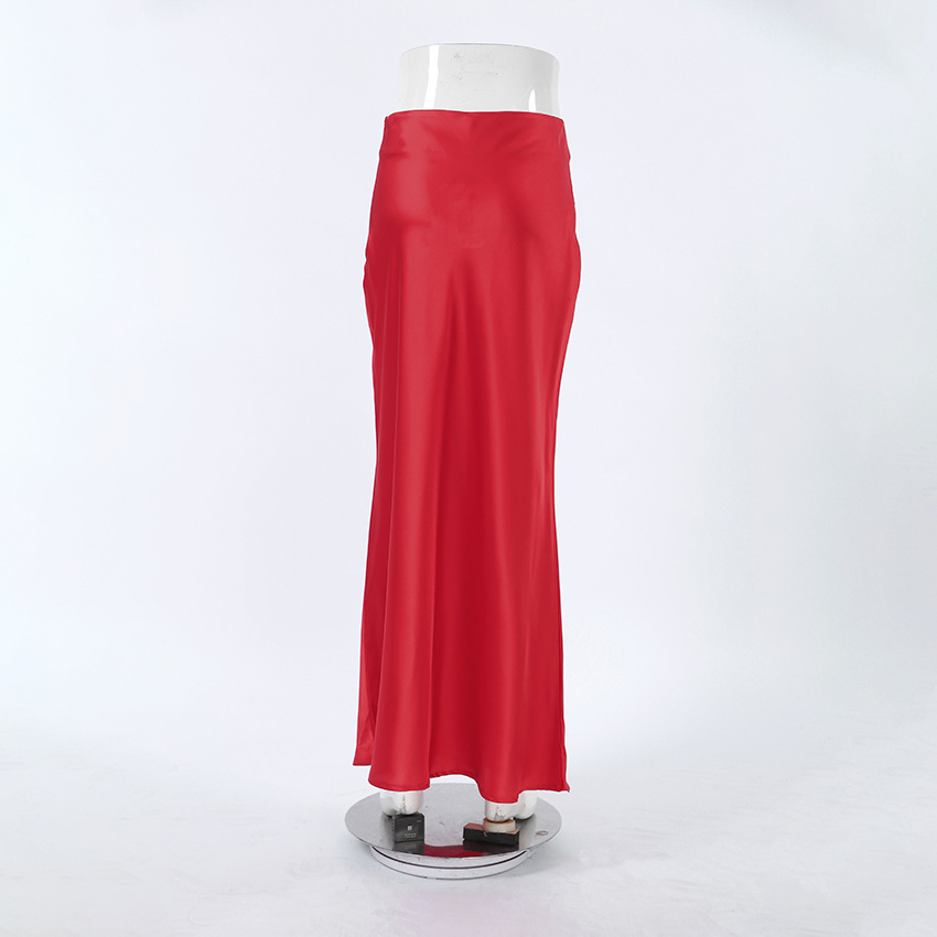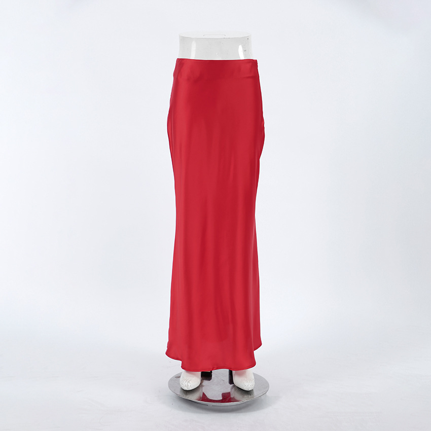 Red High Waisted, Fishtail, Ankle High Skirt, Thin, Soft Matte, Satin Skirt