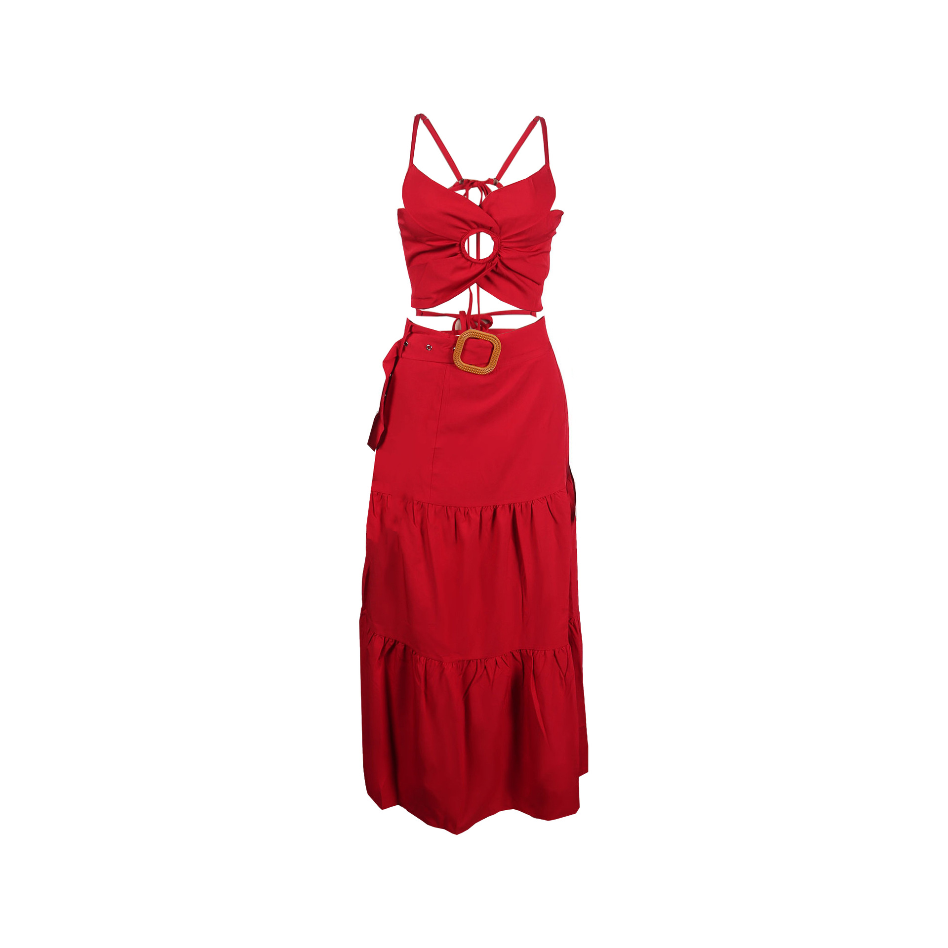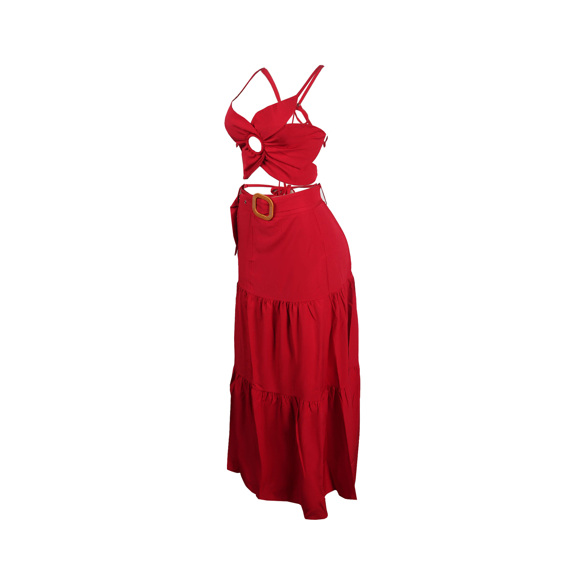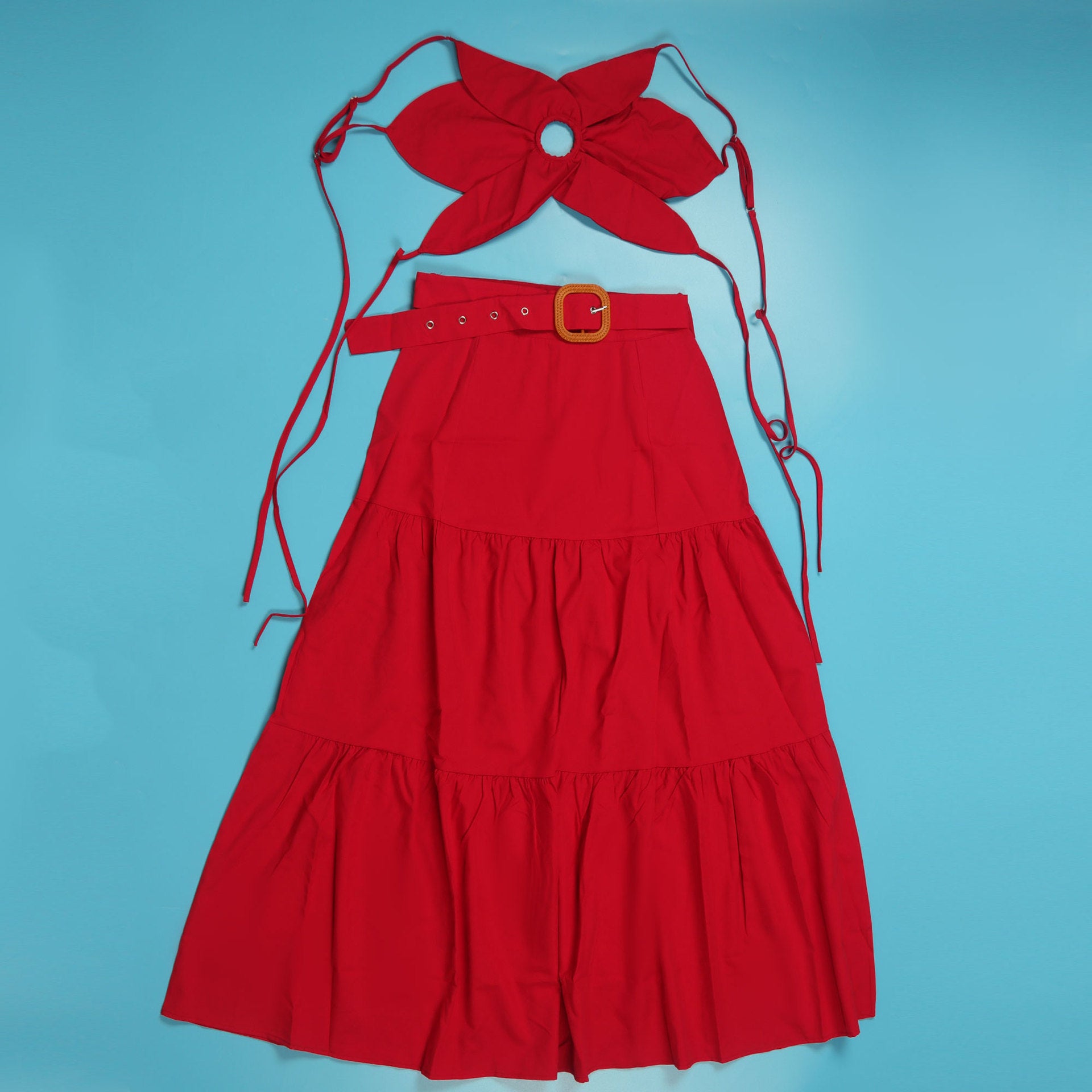 Sexy Solid Color Special-Shaped Strap Large Skirt Belt Set