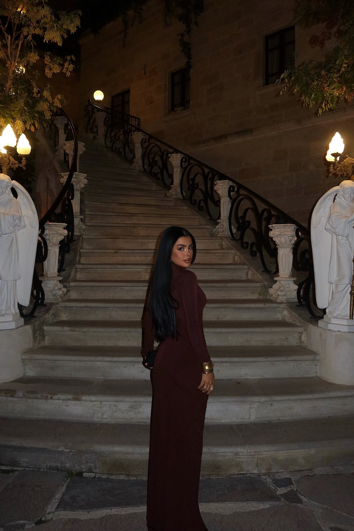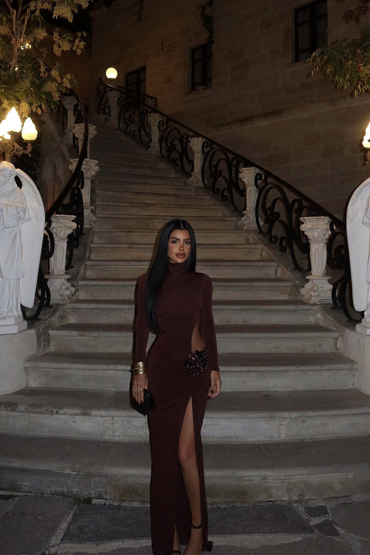 Sexy Elegant Cutout With Three Dimensional Floral Turtleneck Evening Dress