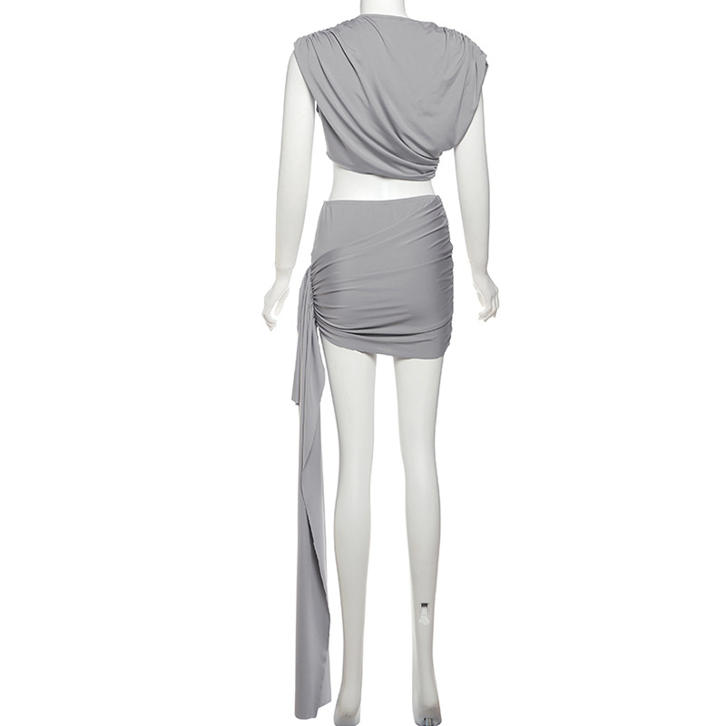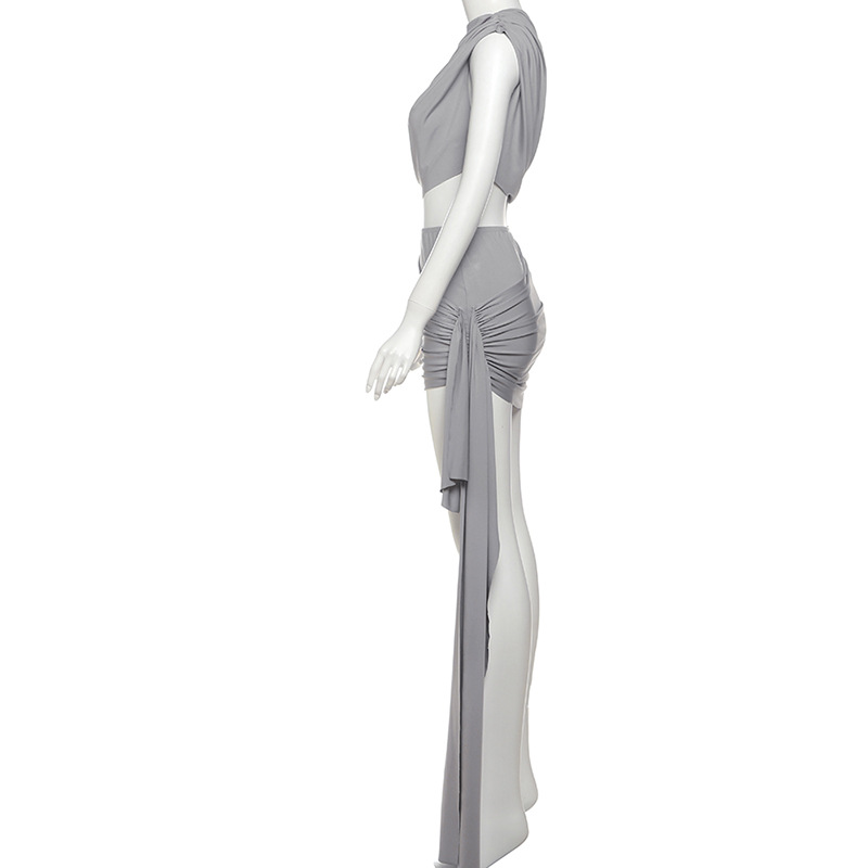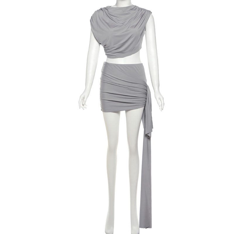 Sexy Cropped Top Slim Ribbon Skirt Outfit Women