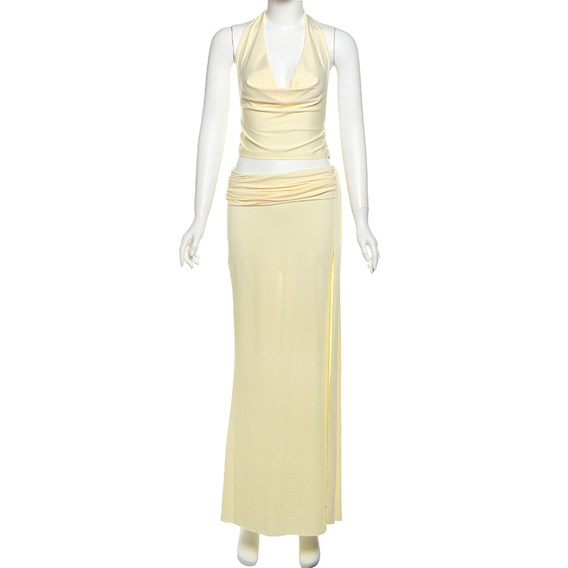 Summer Sexy Backless Halter Top Slim Printed Three Piece Skirt Sets