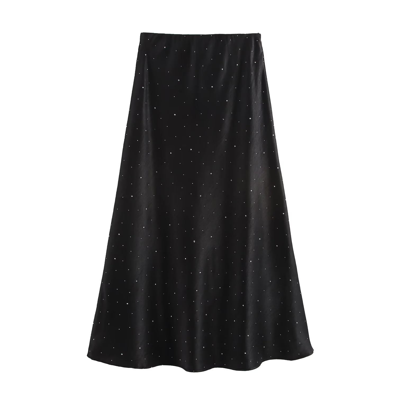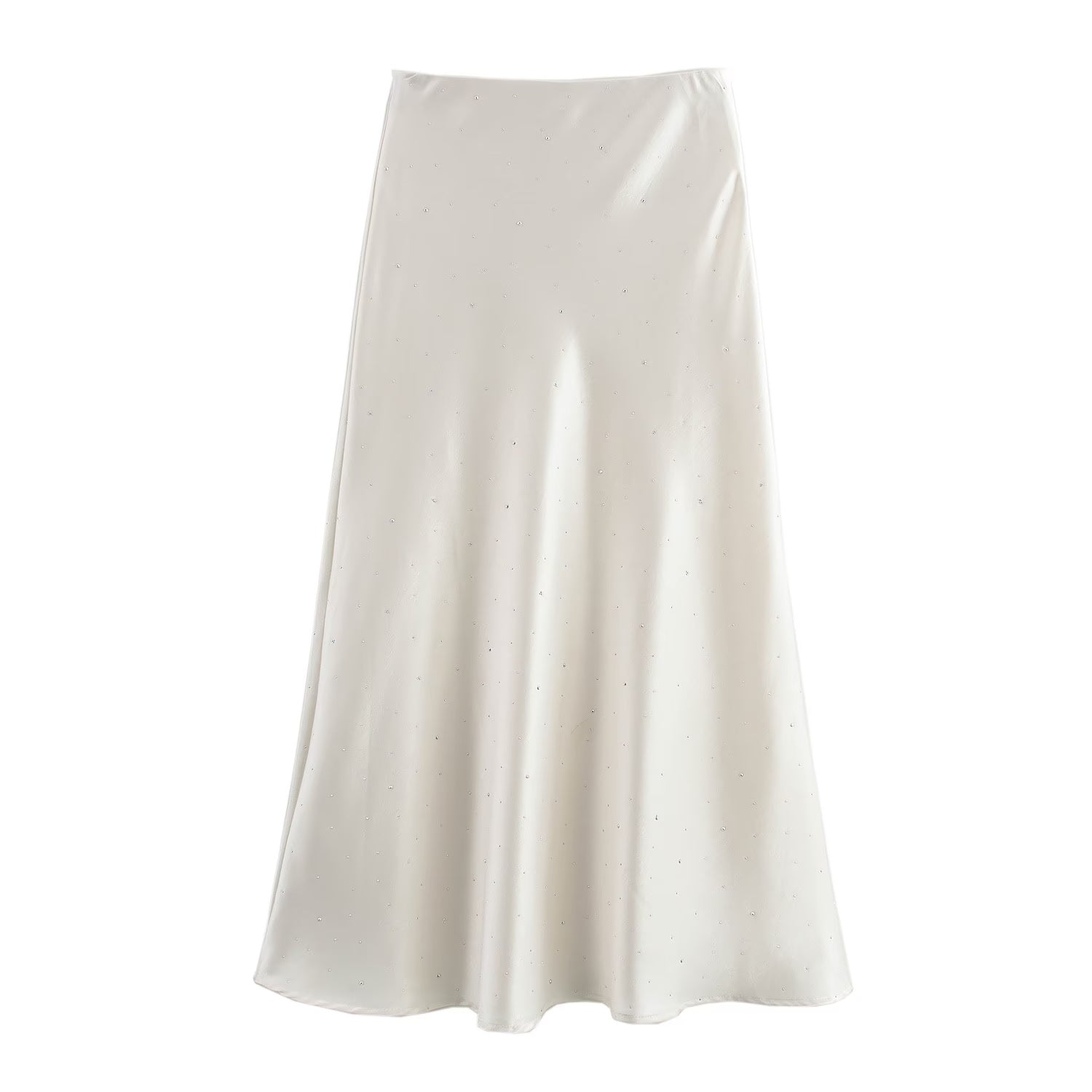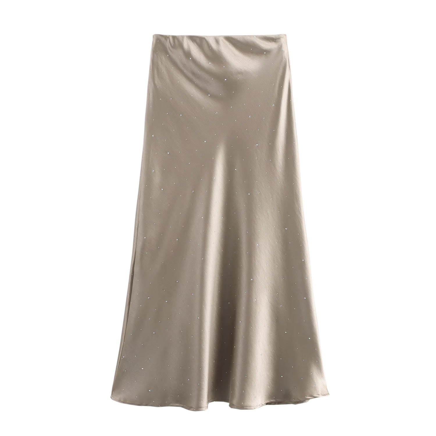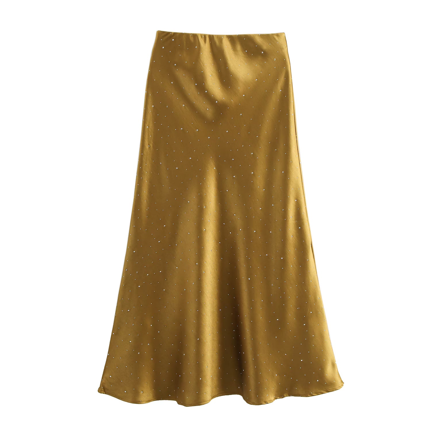 Spring Women Clothing Slimming Solid Color Rhinestone Fit Fishtail Long Skirt
