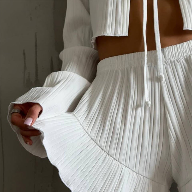 Summer Loose Casual Lace up Cardigan Top Shorts Home Two Piece Sets