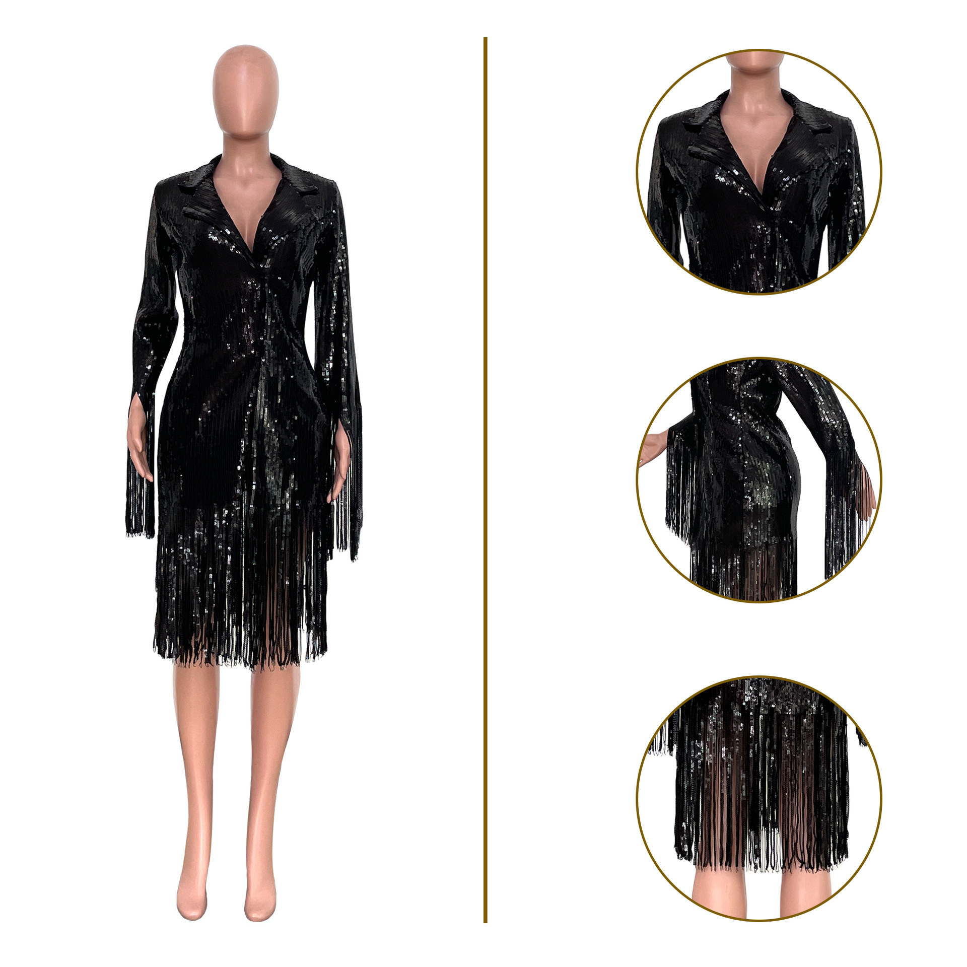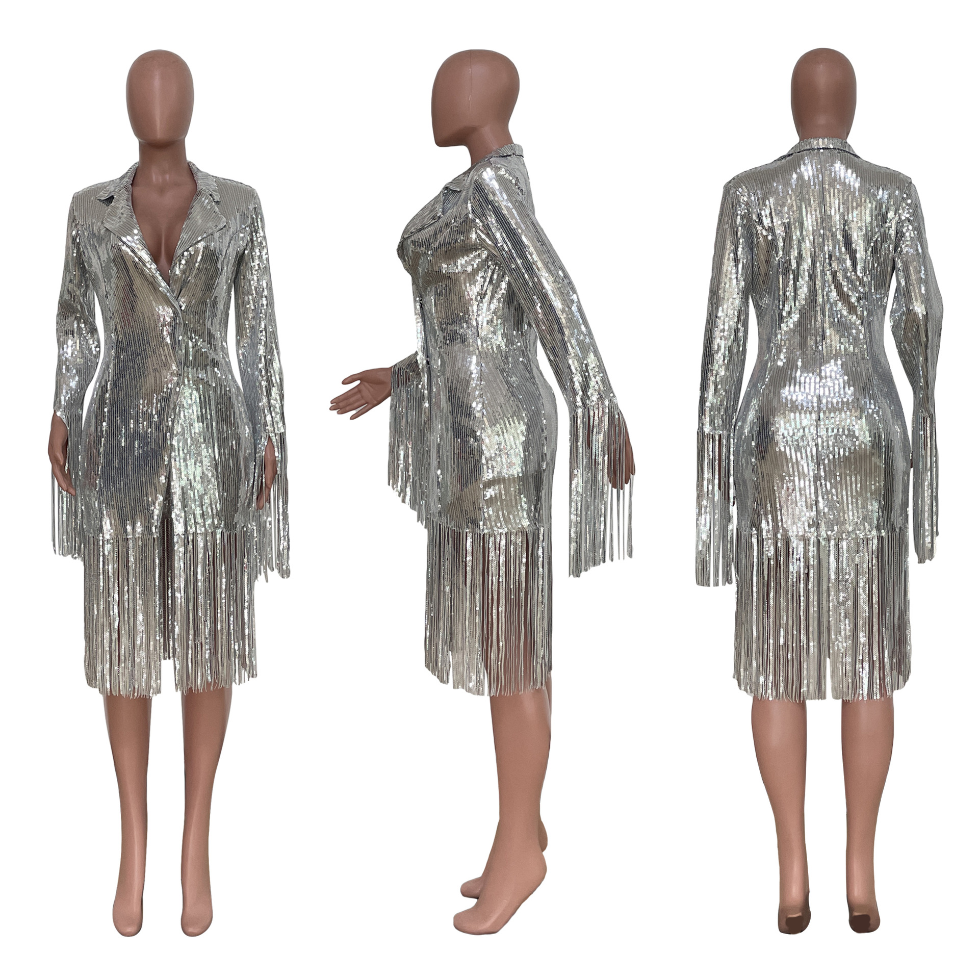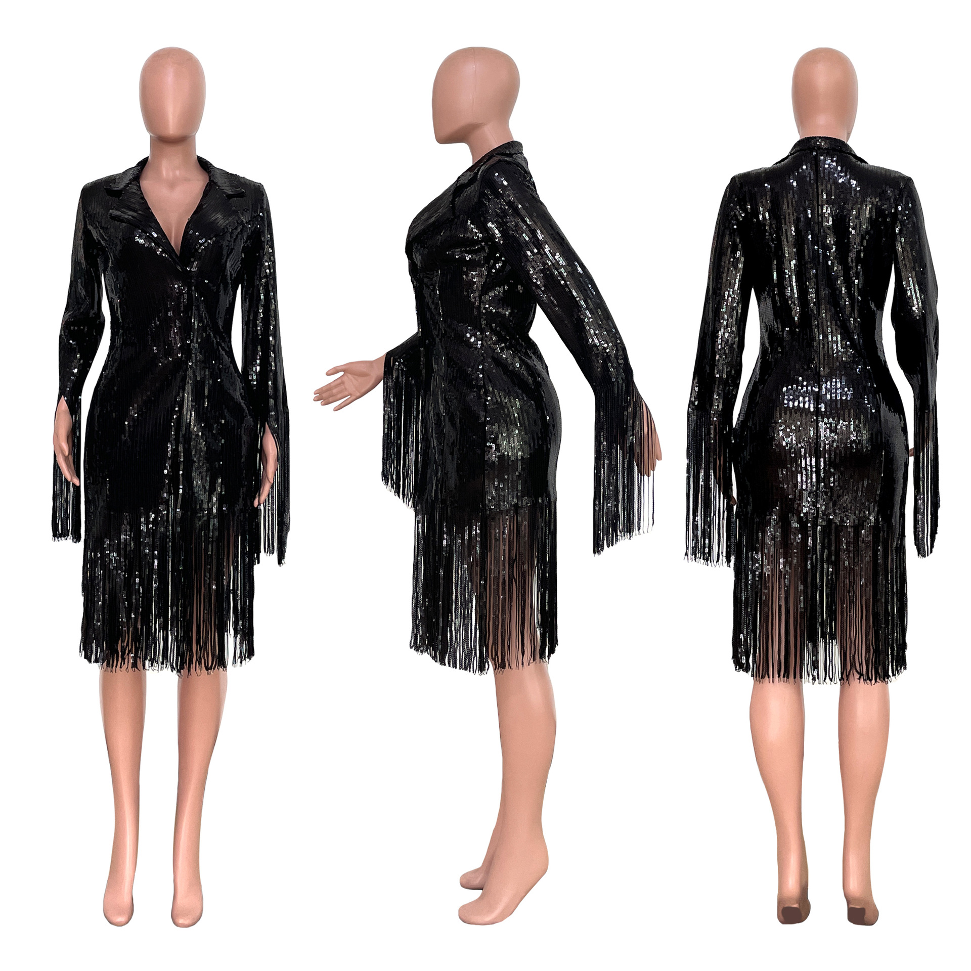 Tassel Sequin Long Sleeve Midi Blazer Dress
