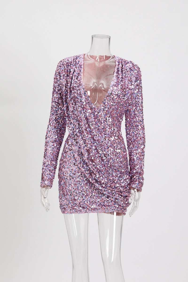 Women Clothing Sexy Deep V Plunge Long Sleeve Sequ Dress Party Dress